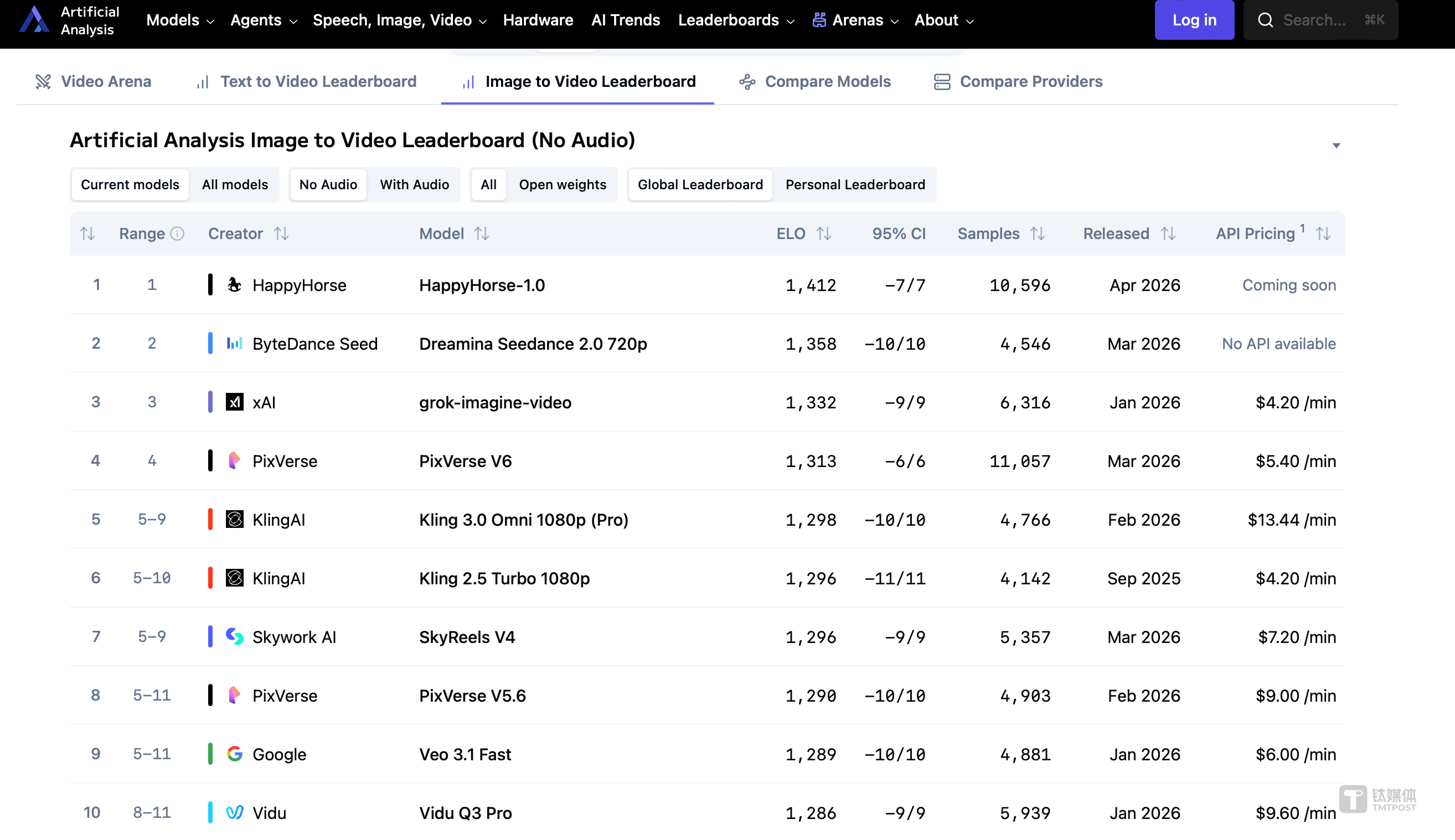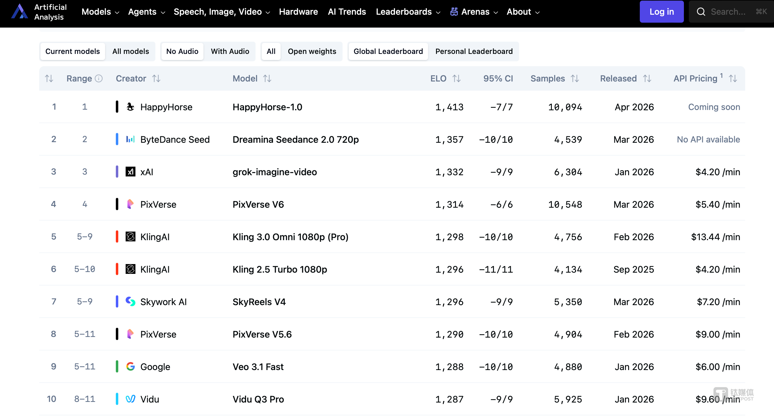 Artificial Analysis Video Arena 不是厂商自嗨的公关榜,而是几千名真实用户在完全不知情的情况下,对生成的视频盲测投出的 Elo 积分。